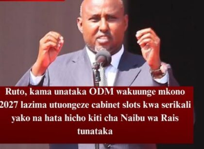 ”Ruto, kama unataka ODM wakuunge mkono 2027 lazima utuongeze cabinet slots kwa serikali yako na hata hicho kiti cha Naibu wa Rais tunataka,” Junet Mohammed