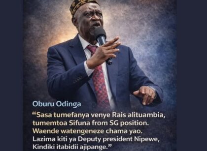 Siaya Senator Oburu Odinga has made a decisive statement regarding leadership changes within the Orange Democratic Movement (ODM). In his remarks, he confirmed that the party had removed Edwin Sifuna from the position of Secretary-General, signaling a shift in party dynamics and an opening for new leadership arrangements. Sasa tumefanya venye Rais alituambia, tumemtoa Sifuna […]