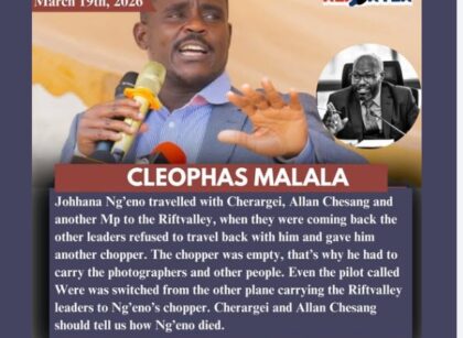 Cleo Malala has raised serious questions over the circumstances surrounding the tragic death of Emurua Dikir Member of Parliament, Johhana Ng’eno, calling on fellow leaders to provide clarity. According to Malala, the events leading up to Ng’eno’s death reveal troubling inconsistencies that demand public scrutiny. Reports indicate that Ng’eno had traveled with MPs Cherargei, Allan […]