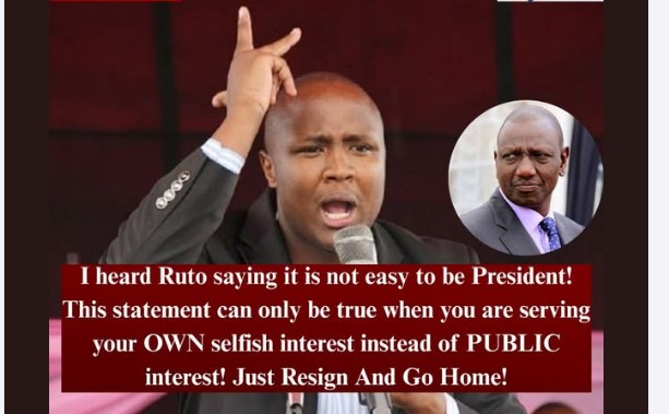 “I heard Ruto saying it is not easy to be President! This statement can only be true when you are serving your OWN selfish interest instead of PUBLIC interest! Just Resign And Go Home!” Keter declared, criticizing what he perceives as a disconnect between the President and the needs of ordinary Kenyans.