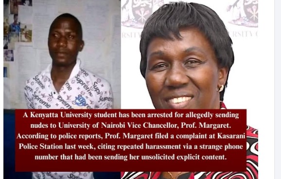 Kenyatta University Student Arrested for sending unsolicited explicit content TO University of Nairobi VC Prof. Margaret