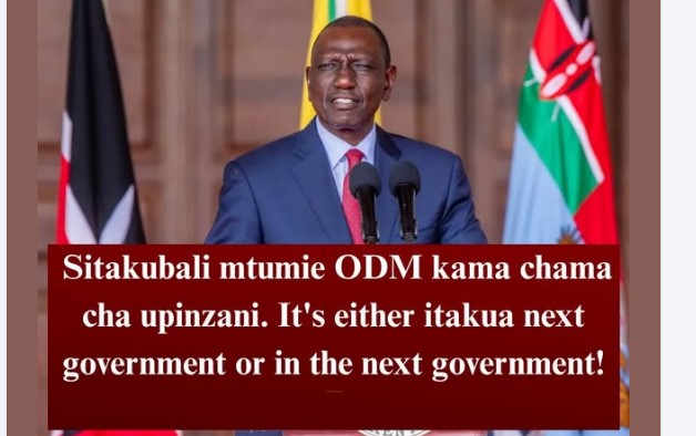 President Ruto Warns: “Sitakubali mtumie ODM kama chama cha upinzani itakua kwa next government or in the next government ”