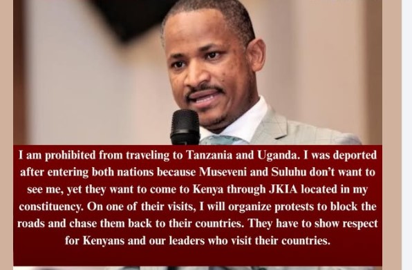 Babu Owino:”I am prohibited from entering Tanzania & Uganda. I was deported in both nations Museveni ,Suluhu don’t want to see me, yet they want to come to Kenya”