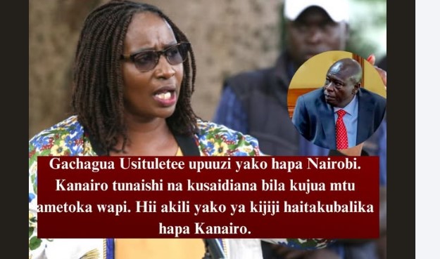 Nairobi Woman Representative Beatrice Elachi has fired back at former Deputy President Rigathi Gachagua, accusing him of bringing “village politics” into the capital. Elachi, in a sharply-worded statement, told Gachagua to stop what she termed as divisive and backward rhetoric, insisting that Nairobi is a cosmopolitan city where people coexist without tribal or regional discrimination.