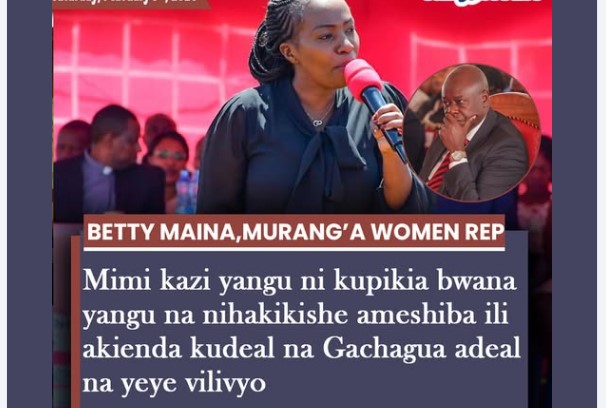 Public figure Betty Maina has sparked attention with a statement about her role in supporting her husband. In her remarks, Maina described her work as ensuring that her husband is well taken care of, even suggesting that she helps him “prepare” for political negotiations with former Deputy President Rigathi Gachagua.