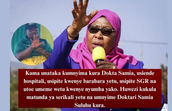 Samia Suluhu’s close ally warns Tanzanians-“Kama unataka kumnyima kura Dokta Samia, usiende hospitali, usipite kwenye barabara yetu, usipite SGR na utoe umeme wetu kwenye nyumba yako’
