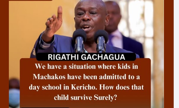 We have a situation where kids in Machakos have been admitted to a day school in Kericho. How does that child survive Surely? ” Riggy G!