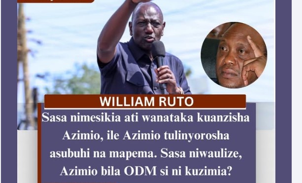 President Ruto laughs at Uhuru and Kalonzo-Sasa nimesikia ati wanataka kuanzisha Azimio, ile Azimio tulinyorosha asubuhi na mapema. Sasa niwaulize, Azimio bila ODM si ni kuzimia?
