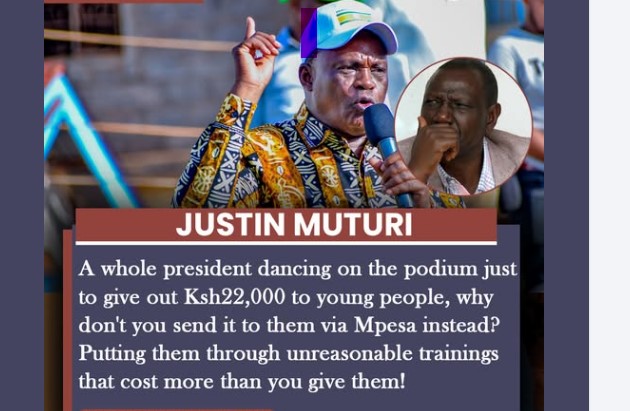 JB Muturi to Ruto-A whole president dancing on the podium just to give out Ksh22,000 to young people, why don’t you send it to them via Mpesa instead?