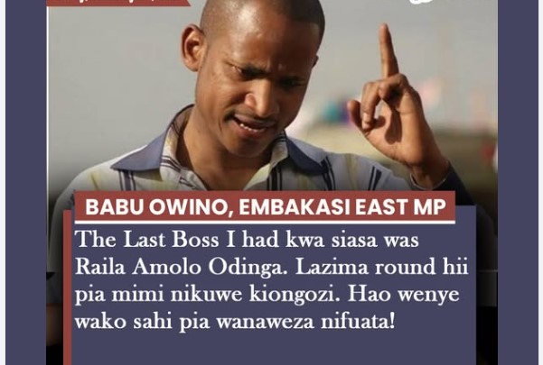 Babu Owino-The Last Boss I had kwa siasa was Raila Amolo Odinga. Lazima round hii pia mimi nikuwe kiongozi. Hao wenye wako sahi pia wanaweza nifuata!
