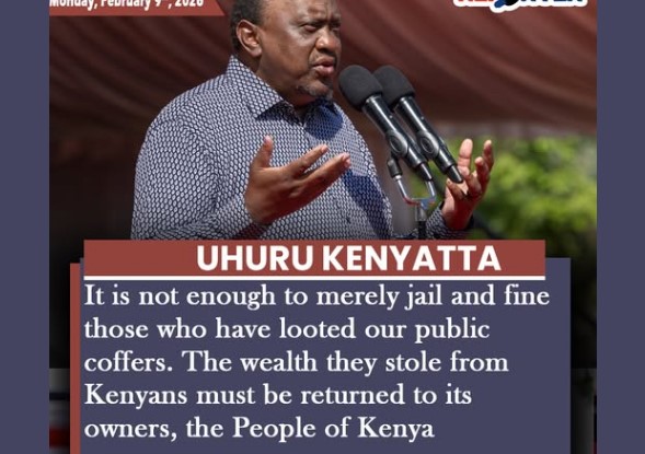 It is not enough to merely jail and fine those who have looted our public coffers. The wealth they stole from Kenyans must be returned to its owners, the People of Kenya-Uhuru Kenyatta