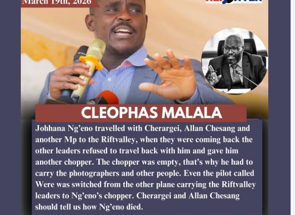 “The public deserves answers. Cherargei and Allan Chesang must explain exactly what happened and how Ng’eno died,” Malala said. His statements place political leaders under pressure to provide transparency, as citizens demand accountability in the wake of the tragedy.
