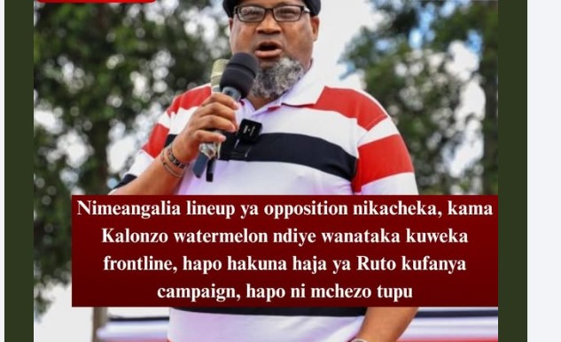 “Nimeangalia lineup ya opposition nikacheka. Kama Kalonzo watermelon ndiye wanataka kuweka frontline, hapo hakuna haja ya Ruto kufanya campaign. Hapo ni mchezo tupu,” Cosmo Choy said.