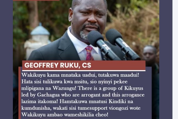 The CS further criticized what he termed as deliberate attacks and disrespect directed at Interior CS Kithure Kindiki, saying such actions were unacceptable, especially considering the support extended to Kikuyu leaders who currently hold senior government positions. He maintained that criticism should be issue-based and respectful, not personalized or framed along ethnic lines.