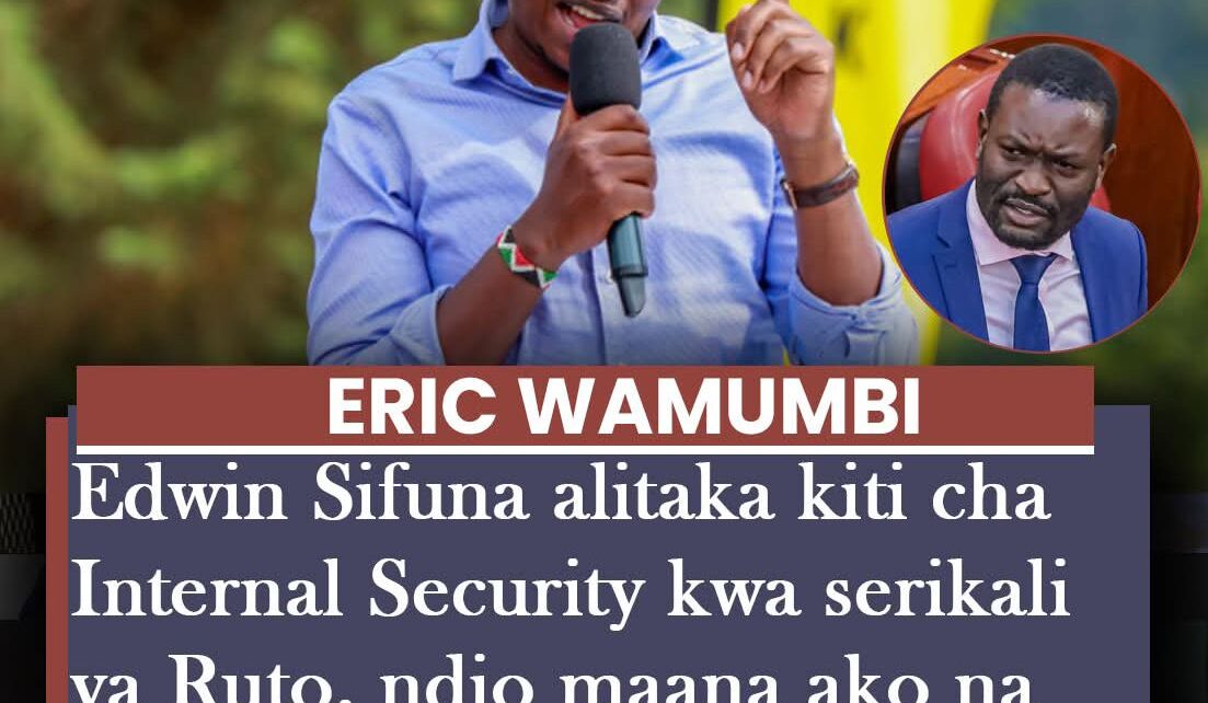 Eric Wamumbi has claimed that Senator Edwin Sifuna was interested in securing the Interior and National Administration docket in President William Ruto’s government, suggesting that this is the reason behind Sifuna’s strong criticism of the administration.