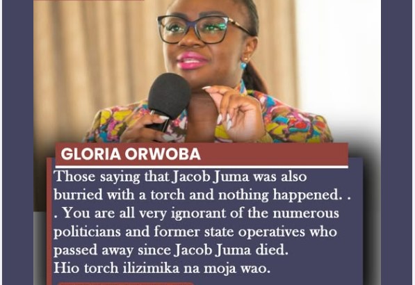 Politician Gloria Orwoba has made controversial remarks regarding the late Jacob Juma, claiming that a torch buried with him has had deadly effects. According to Orwoba, the torch has allegedly been linked to the deaths of several politicians and state operatives.