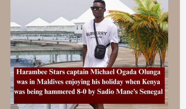 Harambee Stars captain Michael Olunga sparked discussions among fans after he was spotted enjoying a holiday in the Maldives while the national team faced a crushing 8–0 defeat at the hands of Sadio Mane’s Senegal.