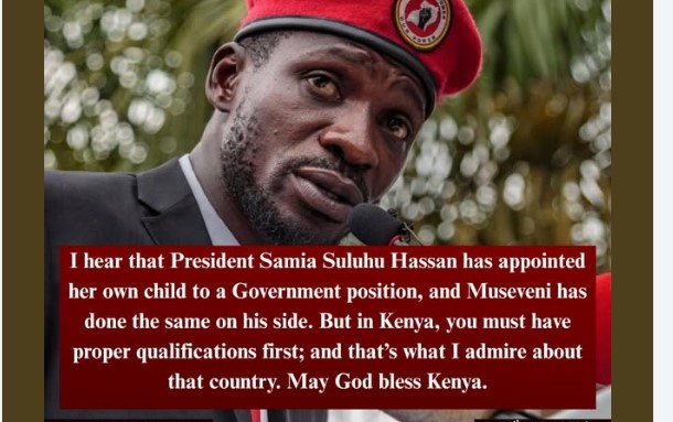 “I hear that President Samia Suluhu Hassan has appointed her own child to a government position, and Museveni has done the same on his side. But in Kenya, you must have proper qualifications first; and that’s what I admire about that country. May God bless Kenya,” Bobi Wine remarked.