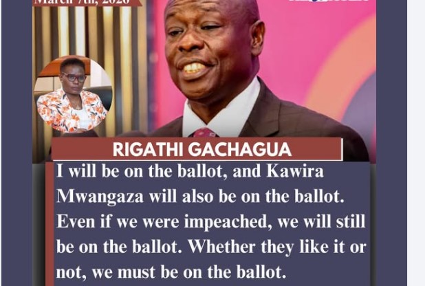 “I will be on the ballot, and Kawira Mwangaza will also be on the ballot. Even if we were impeached, we will still be on the ballot. Whether they like it or not, we must be on the ballot,” Gachagua stated.