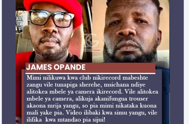 James Opande has issued a detailed statement to authorities regarding a controversial video that has circulated online, distancing himself from any intention to record or distribute explicit content. According to Opande, the incident occurred while he was at a nightclub recording his friends as they celebrated, insisting that the situation took an unexpected turn.