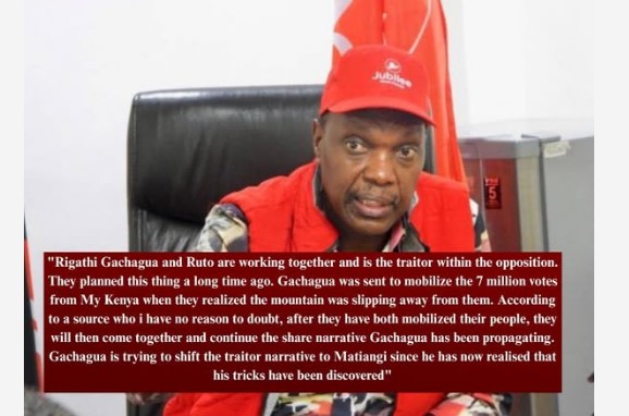 The remarks come at a time when cracks are emerging within the opposition, with leaders trading accusations over loyalty and strategy. Kioni’s revelation adds a new layer to the political intrigue, suggesting that what appears to be internal wrangles could actually be part of a broader plan coordinated at the highest levels of government.
