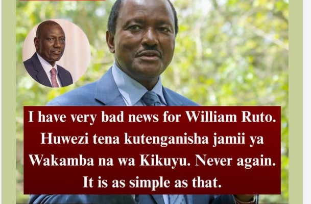 “I have very bad news for William Ruto. Huwezi tena kutenganisha jamii ya Wakamba na wa Kikuyu. Never again. It is as simple as that,” Kalonzo declared to thunderous applause from the crowd.