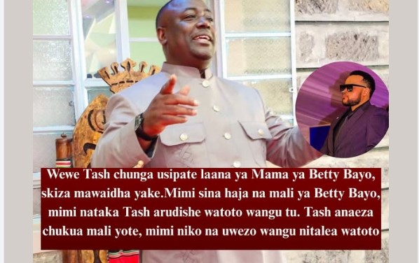 Kanyari’s remarks signal growing tension as he distances himself from allegations related to property disputes, insisting that his sole concern is the return and well‑being of his children. By invoking the warning from Betty Bayo’s mother, he emphasized the seriousness of the situation and urged Tash to heed her counsel to avoid what he described as potential misfortune or laana.