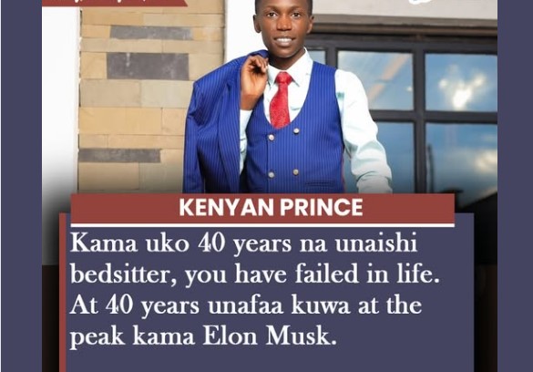 Kenyan Prince’s remark that anyone who is 40 years old and living in a bedsitter has “failed in life,” and that by 40 one should be at the peak like Elon Musk, has sparked strong reactions because it touches on a sensitive but common social pressure: how success is defined.