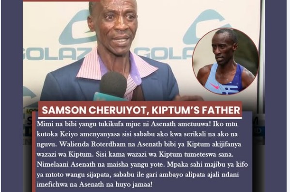 In a deeply distressing account, the grieving father accused Kiptum’s widow, Asenath, of sidelining and mistreating him and his wife since their son’s death. He alleged that the couple has been excluded from key decisions and information concerning Kiptum’s legacy and the circumstances surrounding his passing. According to him, this exclusion has compounded their pain and left them feeling abandoned and silenced at a time when they most need answers and support.