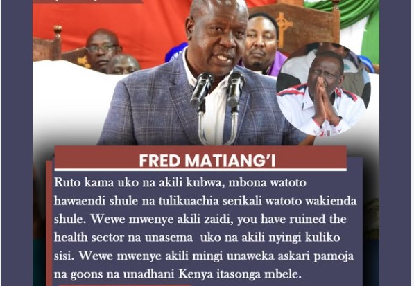 Matiang’i’s criticism highlights concerns over service delivery in key sectors like education and healthcare. By referencing declining school attendance and perceived challenges in the health system, he points to areas where governance outcomes have not met public expectations. His remarks suggest that effective leadership should be measured not by rhetoric or claims of intelligence but by tangible improvements in citizens’ lives.