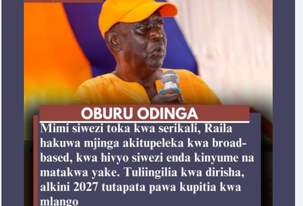 “Tuliingilia kwa dirisha, lakini 2027 tutapata pawa kupitia kwa mlango,” Oburu remarked, suggesting that while the current cooperation may appear indirect, the ultimate goal is to secure full political power through the ballot in the 2027 General Election.