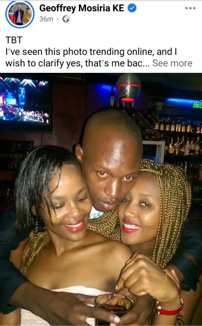 Nairobi County Environment Chief Officer Geoffrey Mosiria has come out and reacted after his photo hugging two beautiful ladies at a nightclub circulated on social media.