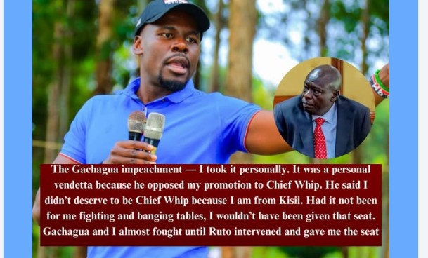Osoro claims that the conflict between him and Gachagua did not begin with the impeachment motion itself but with earlier tensions inside government ranks. He alleges that Gachagua viewed him as unsuitable for a key leadership position and dismissed the possibility of a Kisii MP holding the influential Chief Whip role. This, Osoro says, wounded him personally and motivated his decision to lead the charge against the Deputy President.