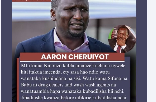 Aaron Cheruiyot has sparked controversy following sharp remarks directed at opposition leaders during a recent political address.