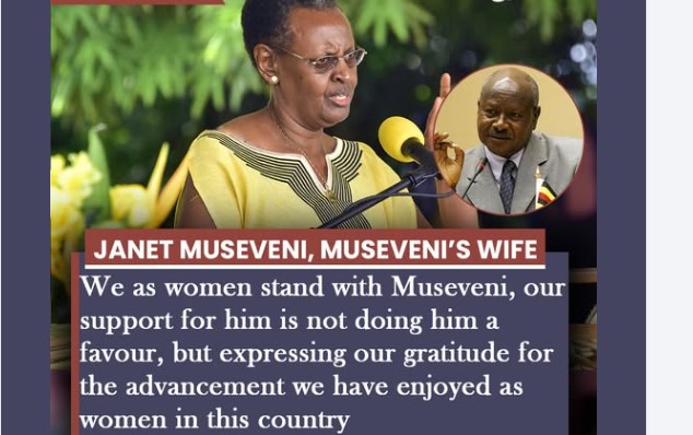 Museveni's wife Janet says-We as women stand with Museveni, our support for him is not doing him a favour, but expressing our gratitude for the advancement we have enjoyed as women in this country -