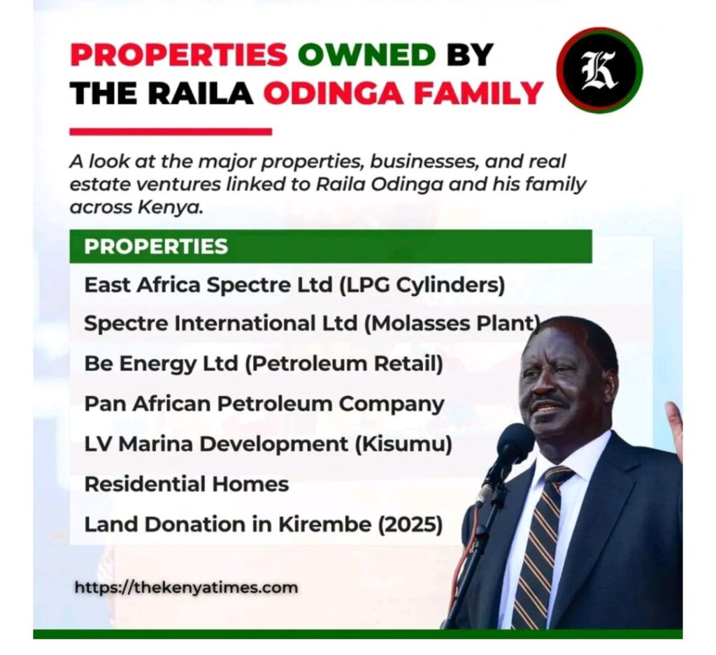 The Odinga family is said to have major investments across several sectors including energy, manufacturing, and real estate.