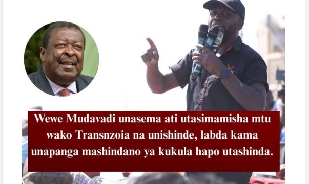 Trans Nzoia Governor George Natembeya has fired back at Prime Cabinet Secretary Musalia Mudavadi, dismissing his threats to field a candidate against him in the 2027 elections.