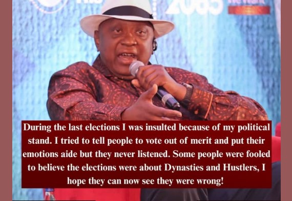 Speaking at a recent public function, Uhuru noted that the political narrative of “Dynasty versus Hustler” was used against him in the run-up to the 2022 General Election, leading to his opponents gaining traction among ordinary citizens.