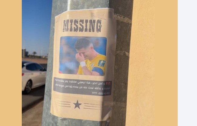 Fans in Saudi Arabia were left puzzled after posters appeared on the streets referencing Cristiano Ronaldo, following his notable absences from Al Nassr matches and training sessions. The notices, which have since circulated online, carried a peculiar message that read: “This is a 40-year-old going through an obligation of excessive crying, and his family is looking for him.”