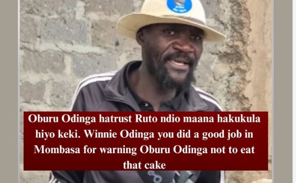 “Oburu Odinga hatrust Ruto ndio maana hakukula hiyo keki. Winnie Odinga, you did a good job in Mombasa for warning Oburu Odinga not to eat that cake.”