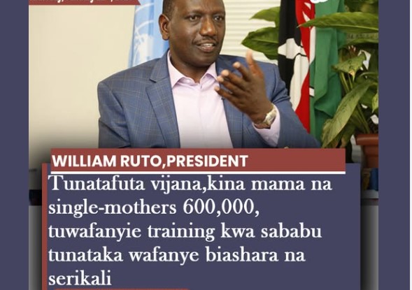 President William Ruto has announced plans to provide skills training to 600,000 young people, women, and single mothers across the country.