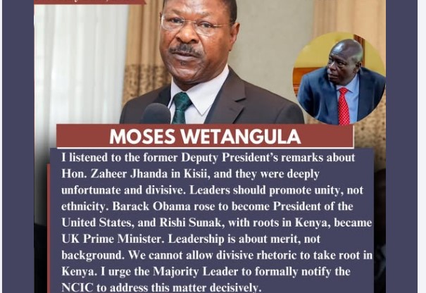 Rais wa Bunge la Kenya, Rigathi Gachagua, amekumbwa na dhihaka ya kisiasa baada ya kauli zake kuhusu Mbunge Zaheer Jhanda wa Kisii. Bunge limeagiza National Cohesion and Integration Commission (NCIC) kumuita Gachagua mara moja ili kutoa maelezo na kubaini iwapo matamshi yake yamevunja kanuni za maadili au yanayoweza kuchochea migawanyiko ya kikabila au kidini.