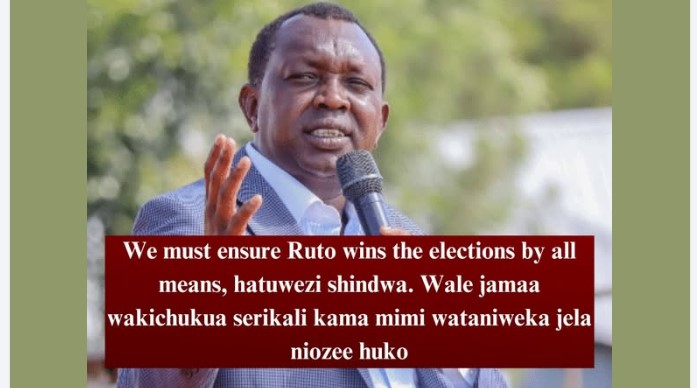 “We must ensure Ruto wins the elections by all means, hatuwezi shindwa. Wale jamaa wakichukua serikali kama mimi wataniweka jela niozee huko,” he said in a clip that has been widely shared on social media.
