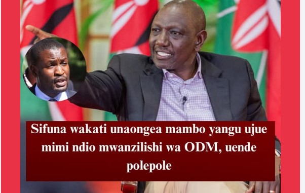 “Wewe Sifuna, wakati unaongea mambo yangu ujue mimi ndio mwanzilishi wa ODM, uende polepole,” Ruto said, leaving his audience in awe of the bold declaration.