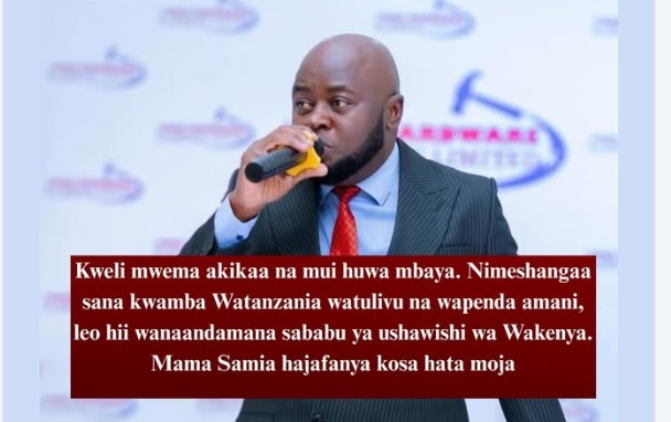 He added, “Nimeshangaa sana kwamba Watanzania watulivu na wapenda amani, leo hii wanaandamana sababu ya ushawishi wa Wakenya. Mama Samia hajafanya kosa hata moja.”