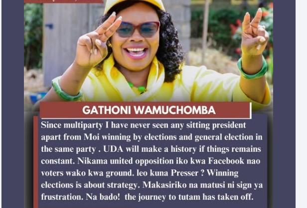 Mbunge wa Githunguri, Gathoni Wamuchomba, amesema kuwa safari ya kuhakikisha Rais William Ruto anahudumu mihula miwili tayari imeanza.