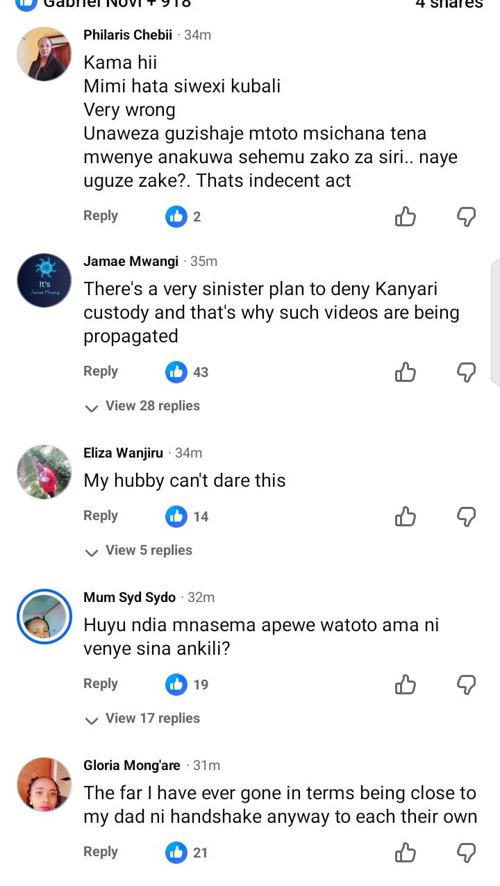 Criticism has focused on the positioning and physical contact captured in the clip, with social media users calling for clearer parental boundaries between Kanyari and his daughter.
