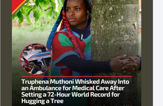 Eyewitnesses reported that after hugging the tree non-stop for three days, Muthoni showed signs of extreme fatigue and dehydration. On-site medical teams attended to her before transferring her to a medical facility for further monitoring. Despite the exhaustion, her accomplishment has been hailed as a remarkable display of determination, discipline, and sheer willpower.