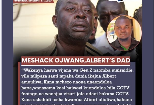 “Wakenya haswa vijana wa Gen Z naomba mnisaidie, vile mlipaza sauti mpaka dunia ikajua Albert ameuliwa. Kuna mchezo naona unaendelea hapa,wanasema kesi haiwezi kuendelea bila CCTV footage,na wanajua vizuri jela ndani hakuna CCTV. ”-Albert Ojwang's father -