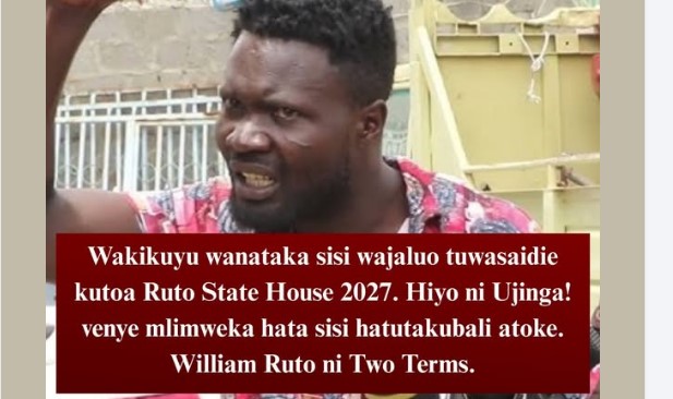 He stated, “Wakikuyu wanataka sisi Wajaluo tuwasaidie kutoa Ruto State House 2027. Hiyo ni ujinga! Venye mlimweka hata sisi hatutakubali atoke. William Ruto ni Two Terms.”
